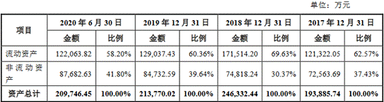 截至2017年12月31日、2018年12月31日、2019年12月31日及2020年6月30日,明泰股份资产总额分别为19.39亿元、24.63亿元、21.38亿元和20.97亿元。其中,该公司流动资产分别为12.13亿元、17.15亿元、12.90元和12.21亿元,占比分别为62.57%、69.63%、60.36%和58.20%;非流动资产分别为7.26亿元、7.48亿元、8.47亿元和8.77亿元,占比分别为37.43%、30.37%、39.64%和41.80%。