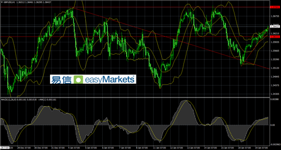 技术上看,英镑冲过1.361的关键压力,使得前期双头结构的形态不成立,而现在1.361的位置成为支撑,上方偏多。指标看布林线开始扩张,预示着波动幅度可能加大,而MACD处于0轴上方,而且柱条长度加大,说明上涨加速还在持续。策略上投资人逢低多为主,跌破1.36考虑离场。