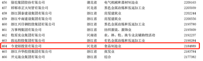 如今,今麦郎也算是在方便面食品领域争得了一席之地。根据2020年10月中华全国工商业联合会发布的《2020中国民营企业500强榜单》显示,今麦郎食品股份有限公司控股股东——今麦郎投资有限公司2019年的营收为218.49亿元。