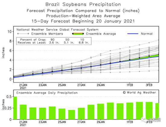 天气已经足够稳定大豆产量,关注未来巴西南部和东北部可能会再次出现干旱的天气模式。