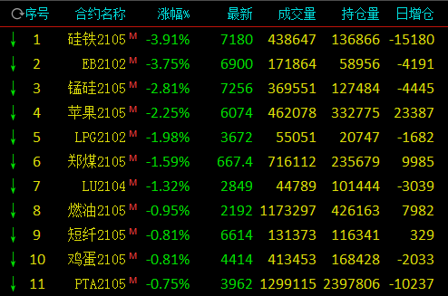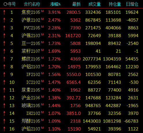 热点栏目1月21日,国内期市收盘涨多跌少,焦炭大涨近4%,沪银、沪锡涨逾2%,螺纹、沪铝涨近2%;铁合金大跌,硅铁跌近4%,锰硅跌近3%;能化品中,PVC涨逾2%,苯乙烯跌近4%,LPG跌近2%。受消息面影响,橡胶冲高回落。