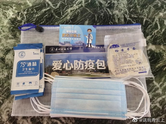 接着,陆续有网友发文,表示学校还为学生准备了爱心防疫包。内含口罩、手套、卫生湿巾等,十分贴心。