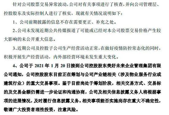 相比之下,美好置业在其最新股价异动公告中,也释放出控股股东正在筹划的大动作,但相比东方时尚的真金白银,该消息并未有效提振公司股价,1月21日仍被巨量卖单封住跌停。