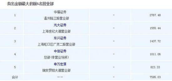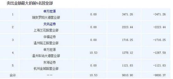 美好置业1月15日闪崩当天龙虎榜显示,申万宏源瑞安罗阳大道营业部、华福证券温州瓯江路营业部、申万宏源温州车站大道营业部3家温州地区席位现身卖出榜单,合计卖出金额达6465.63万元,占个股当日成交总额的34.99%。