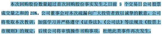 有意思的是,急于通过回购方式“撬板”的东方时尚还“忙中出错”,公司本次回购股份数量已超过首次回购股份事实发生之日前5个交易日公司股票成交量之和的25%,公司为此还公开致歉。