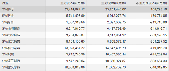 此外,从近20个交易日日的资金流向来看,申万银行板块是近20日以来唯一主力资金净流入的行业。