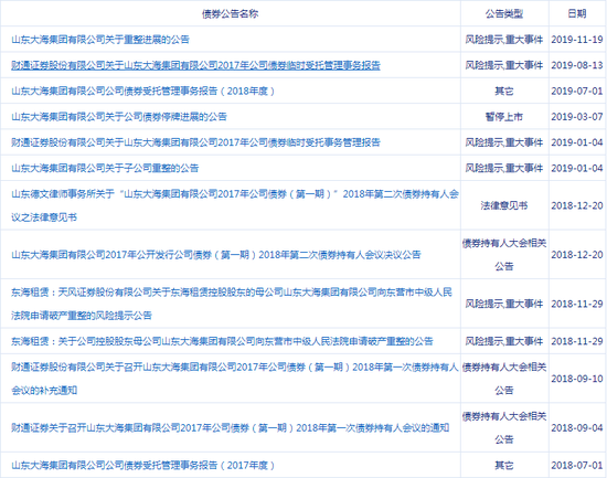 作为债权受托管理人的财通证券,在2019年8月发布的临时受托管理事务报告披露,山东省东营市中级人民法院于2019年1月作出破产裁定,将包括大海集团、金茂纺化在内的28家公司进行实质合并处理。自2019年11月发布大海集团重整进展公告后,也再无后续。