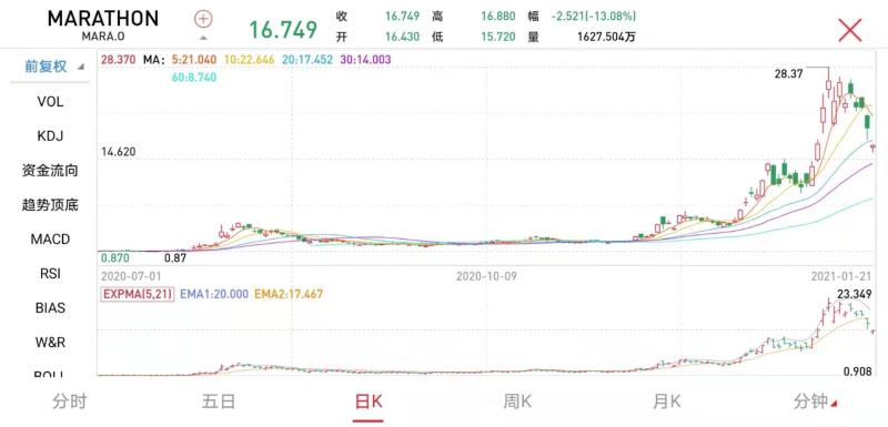 与此同时,美股区块链板块也集体下挫,Marathon Patent跌超15%,Riot Blockchain跌近13%,Bit Digital、嘉楠科技跌近5%,迅雷、第九城市跌超2%……