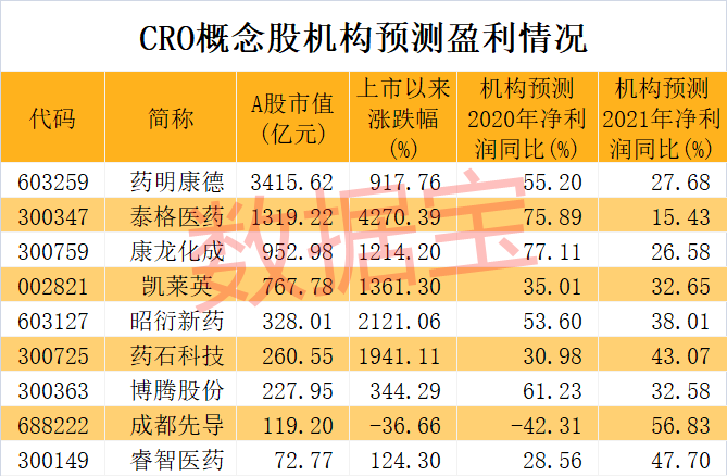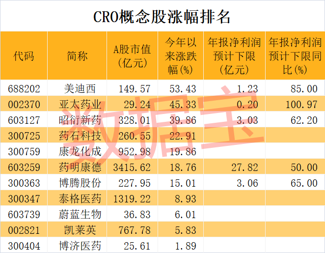 药明康德预计去年净利润同比增长50%至60%,6只CRO概念股频创新高,国内CRO规模复合增速超20%。