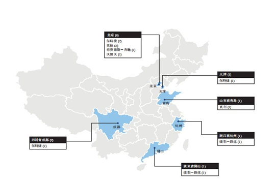 百得利控股在中国六个省市经营12家保时捷、奥迪、梅赛德斯-奔驰、宾利、沃尔沃及美洲虎-路虎品牌的4S经销店,包括北京、天津、山东、四川、浙江及广东。