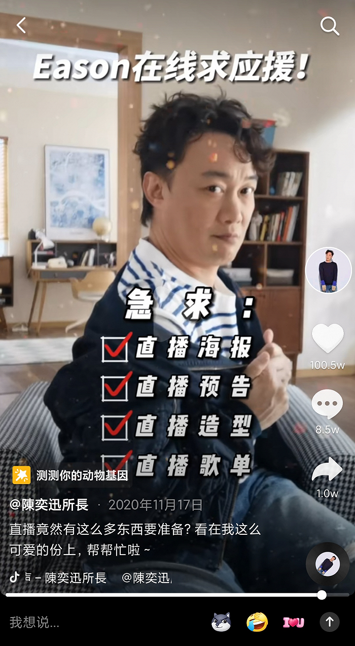 另一方面,抖音为明星丰富、改变自身IP提供了契机。吴亦凡合作抖音,两天八小时不间断直播,打出了赛车手这一新身份;林俊杰变身咖啡师,在咖啡厅里和粉丝直播聊天,强化亲切感;冯巩、郭冬临、郑渊洁等一批文娱前辈,则在抖音吸到了新粉。