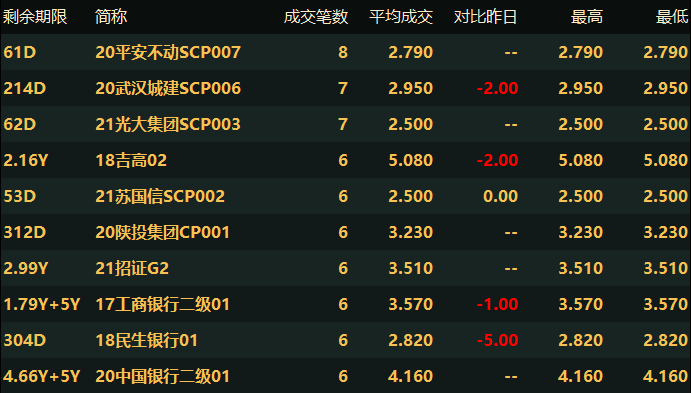信用债总体交投活跃,中票 1Y-3Y期限 AAA券种成交密集。