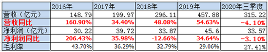 最新的财报数据显示,2020年前三季度,宁德时代营收为315.22亿元,同比下降4.1%;归母净利润为33.57亿元,同比下降3.1%;毛利率为27.41%,同比下滑1.67个百分点。此外,营收增速上年同期为71.70%,增长转为下降;净利润增速较上年同期的45.65%大幅下降。