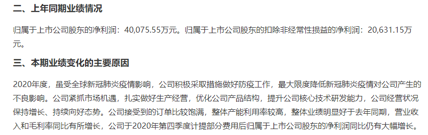 苏州固锝业绩增幅最小,其2020年盈利预计为9163万元至1.21亿元,同比增长-5%至25%。