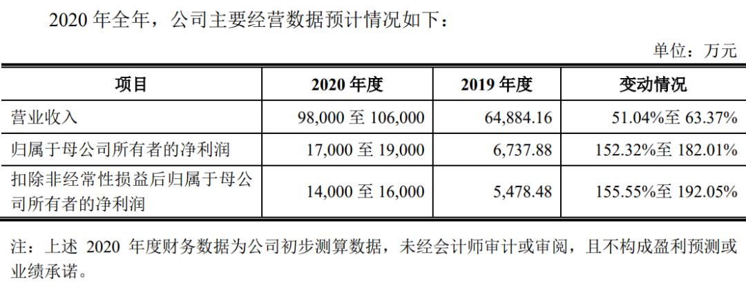 由于TWS耳机爆发,恒玄科技预计2020年归母净利润约1.7亿元至1.9亿元,同比增长152.32%至 182.01%。