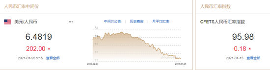 热点栏目1月25日,人民币中间价报6.4819,下调202点,上一交易日中间价报6.4617,在岸人民币上一交易日收报6.4777。