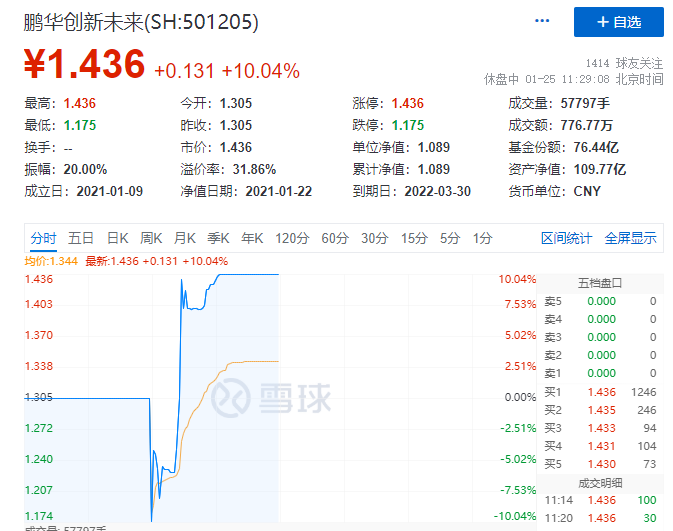 5只基金自1月21日起在上交所上市,上市首日就全线涨停。1月22日,即上市次日,开盘后再度涨停,截至上午11时,5只基金仍保持涨停状态。
