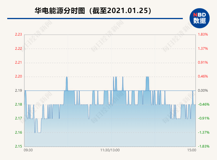 华电能源今日低位震荡,截至收盘,跌0.46%,股价报2.18元,总市值为42.9亿元。