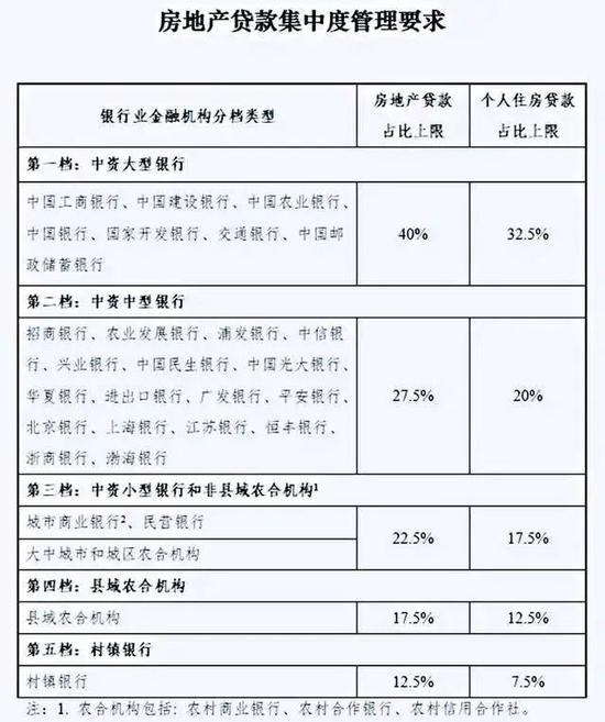 2020年12月31日,央行联合银保监会发布《关于建立银行业金融机构房地产贷款集中管理制度》,将银行分为五档,并设立区别性的“两条红线”指标,第一道红线是房地产贷款占比,第二道红线就是个人住房贷款占比,指个人住房贷款余额占一家银行全部贷款比重。