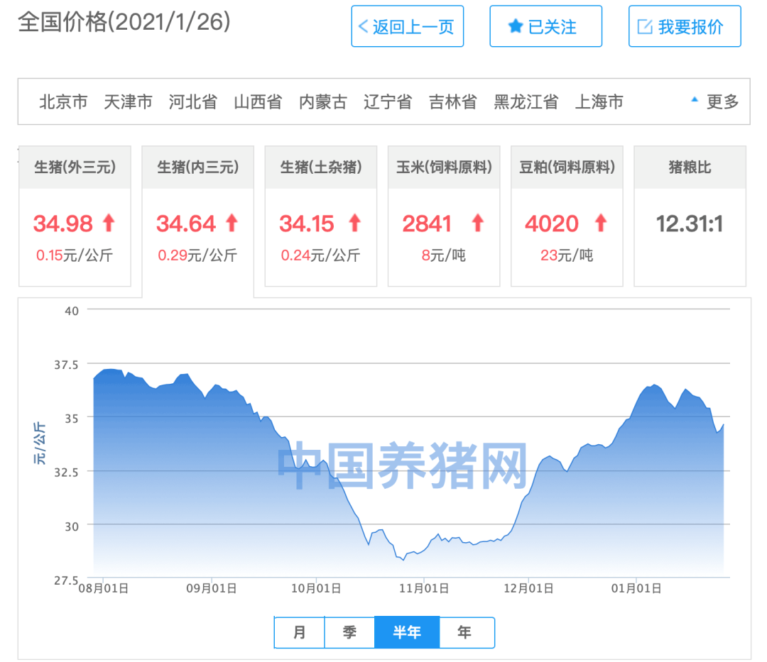 太平洋证券研报表示,随着近期疫情防控加强,冻肉进口和销售将继续受限,生猪供给紧张格局没有改观,春节前猪价仍有望继续反弹。节后,猪价或有所下行,但对2021年全年猪价持乐观预期,预计全年均价25元/公斤。