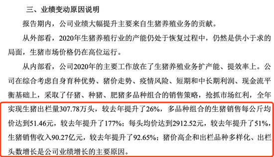 上述企业均明确提及,利润暴增主要是猪肉价格高位运行,且部分企业出栏量大幅增长。