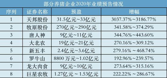 从多家养猪企业已披露的2020业绩预告来看,业绩翻倍增长已是主流。