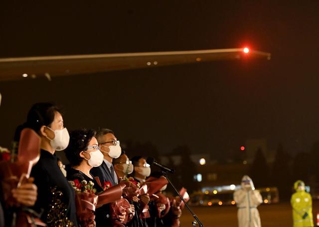 △当地时间2020年7月22日,美国务院在一份声明中称,要求中国驻休斯敦总领事馆在2020年7月24日下午4时前关闭。图为2020年8月17日晚,驻休斯敦总领事馆全体馆员乘包机抵达北京,外交部在首都机场举行简短庄重的迎接仪式。