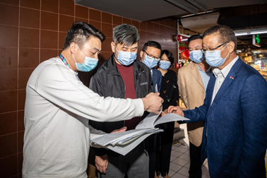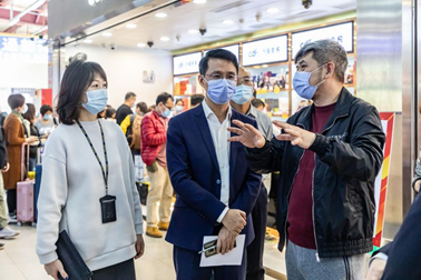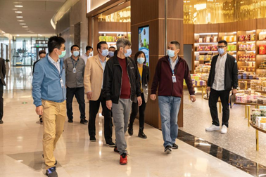 当天下午,鲁君四一行来到珠海免税旗下国贸购物广场,查看春节前商场物资保障及疫情防控措施落实情况,以及配合珠海城市更新项目“城市之心”建设协调工作的进展情况。