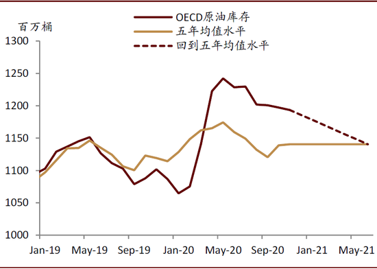 图表: 实际上,OECD库存下降至五年均值水平的情形