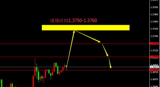 1.3750-1.3760区间沽空,止损25点,目标1.3725、1.3700、1.3675。