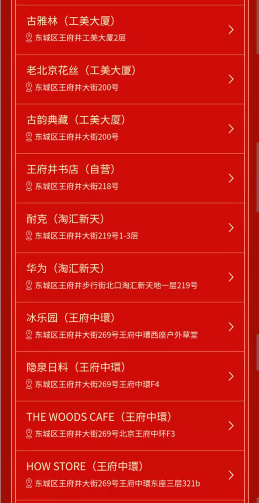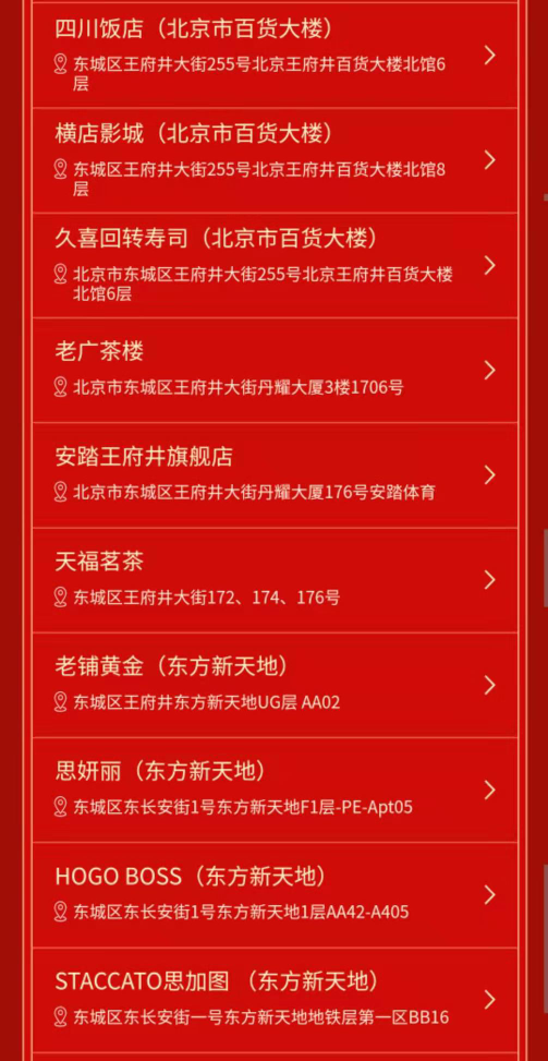此外,本次活动所获红包还可在线上消费,线上商户列表通过京东APP“数字王府井 冰雪购物节”活动专区查看指定商户。