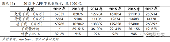 政策引领下,科技产业周期持续上行,产业重心向下游内容领域延伸,TMT行业景气度持续上行。经历了2012年的低迷之后,2013年全球半导体产业迎来了温和复苏,智能终端、电视与计算机等传统的消费电子产品销量回升,推动半导体营业收入的快速增长。同时,2010年iPad问世,此后三年,三星、华硕、LG、亚马逊、谷歌纷纷推出各自的安卓系统平板电脑,组成了第一批安卓平板阵营,国内平板品牌也相继问世,推动了平板电脑在国内的快速普及,全球智能手机制造商开始纷纷推出大屏幕产品,推动了智能手机、平板电脑、面板、摄像头、光模块等重要消费电子及零部件订单的增长。普及率快速提升后,下游应用开始具备了爆发的契机,内容端首先迎来爆发,2013年成为手游元年、国产电影元年、视频付费元年。2013年手机网络游戏用户数突破3.1亿,手机网络游戏市场规模全年保持了30%以上的季度扩张速度,全年市场规模达到139.19亿,相比2012年的53.27亿增幅超过160%。随着游戏市场的火热,游戏产品分发渠道竞争也同步升级,2013年再融资与并购重组均处于宽松周期,年内A股上市公司出现6家游戏渠道公司并购,涉及金额达128亿元,移动互联网的重要商业逻辑得到确认。文化传播领域也迎来爆发式增长。2013年全国总票房217.69亿元,同比增长27.51%。全年内地上映电影305部,其中60部电影票房过亿,国产片占到了33部。国产影片票房127.67亿元,同比增长54.32%,占比58.65%,国产片占比开始超过进口片。与之相伴随的视频领域市场规模同样进入快速扩张阶段,移动互联网及新媒体的出现为内容领域打开了市场空间,产业重心由硬件向内容及应用领域延伸,利好TMT行业长期业绩放量,持续成为高景气赛道。