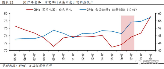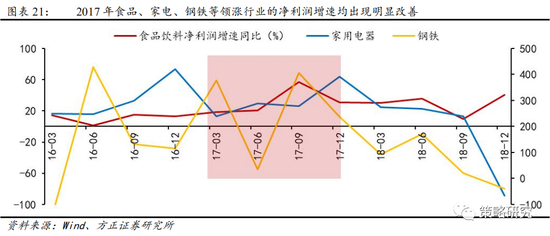 业绩增速及稳定性是决定行业走势的胜负手,食品与家电业绩增速的相对优势以及稳定的业绩输出支撑其领跑,而钢铁主要受益于供改。在2017年流动性不断收紧的背景下,业绩成为决定市场走势的胜负手,而业绩增速高且稳定的行业往往在震荡市中具有明显超额收益。2017年食品饮料和家用电器业绩增速的相对优势以及稳定的业绩输出是支撑其领跑的核心逻辑,四个季度食品饮料和家用电器的净利润增速均为正,全年增速分别为30.23%、32.11%,均创下阶段性新高。具体来看,行业集中度的提升是消费板块业绩保持高增速的主要动力。在消费升级的大潮下,消费者对高质量产品的需求程度进一步提升,实力雄厚的龙头企业优势凸显,而不能顺应市场需求变化的中小企业则面临被淘汰的境地。2017年饮料制造CR4提升了2.04个百分点,而白色家电CR4提升了6.20个百分点,行业集中度的提升使消费板块业绩更稳定,保证了在震荡市中取得超额收益。此外,钢铁在2017年取得超额收益的主要原因也是业绩的大幅改善,由于供给侧结构性改革等政策的推动,在过剩产能不断被出清、落后产能不断被淘汰的背景下,钢铁行业盈利出现大幅好转,行业景气程度得到了明显提升。全年钢铁的净利润同比达到了271.32%,其中Q1、Q3两个季度的净利润增速均保持在400%。