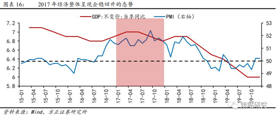 2017年经济整体呈现企稳回升的态势,而货币信用环境经历了循序渐进式地由松转紧。市场保持横盘震荡,估值调整背景下业绩增速的大幅提升是市场走出慢牛行情的核心逻辑,全年食品饮料、家用电器、钢铁领涨。由于供改的成效开始逐渐显现,2017年延续了2016年以来经济回暖的趋势,全年保持6.9%的GDP增速,实现了自2011年以来中国经济的首次提速。货币信用方面,2017年货币政策采取循序渐进式地由松转紧,Q1处于紧缩的起点,Q4开始货币政策的紧缩陡然加码,流动性一阶拐点确立。2017年市场整体保持横盘震荡,估值调整背景下业绩增速的大幅提升是市场走出慢牛行情的核心逻辑,震荡格局下消费板块占优。全年食品饮料、家用电器、钢铁领涨,涨幅分别为53.85%、43.03%、19.74%,领涨的核心逻辑均为行业盈利端的相对优势。
