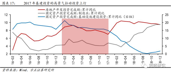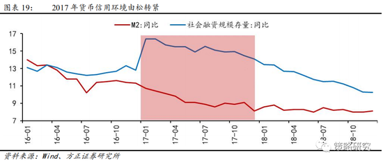 2017年经济整体呈现企稳回升的态势,而货币信用环境经历了循序渐进式地由松转紧。由于供改的成效开始逐渐显现,2017年延续了2016年以来经济回暖的趋势。从GDP增速看,2017年上半年GDP增速重回7%,展现出良好的经济复苏势头。尽管下半年出现小幅下滑,但全年仍保持6.9%的增速,实现了自2011年以来中国经济的首次提速。从经济的驱动力来看,投资与出口对经济的拉动作用明显,内外共振推动经济持续复苏。投资方面,基建投资在全年基本保持15%以上的高增速,依旧是经济发展的主要动能。出口方面,受益于全球经济迎来共振复苏,2017年我国出口情况显著改善。在连续8个月的负增长后,出口增速于2017年1月实现由负转正,3月创下2014年以来的新高。从货币信用环境看,2017年货币政策采取循序渐进式地由松转紧,Q1处于紧缩的起点,标志为央行在1-3月累计上调MLF、SLF和OMO利率20个基点,以及3月底银行业监管风暴的来临。Q4开始货币政策的紧缩陡然加码,11月资管新规征求意见稿的发布标志着货币信用环境的全面收紧,流动性一阶拐点确立。从货币供应量看,2017年M2增速单边下行,从年初的10.7%一路下降至年底的8.1%,体现了金融强监管、去杠杆、去通道的结果。从社融看,在11月金融去杠杆举措加码后信用开始全面收紧,市场真正进入“紧货币+紧信用”组合阶段。