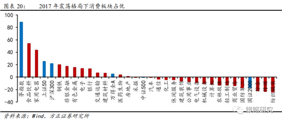1、2010、2013、2017年A股均为典型震荡市,上证指数在2010、2013、2017年分别在2300-3300点、1850-2450点、3000-3450点的区间内保持窄幅波动,且振幅在不断收敛。震荡市下结构性特征凸显,2010、2013年均为成长牛市,2017年为消费股的蓝筹白马行情。