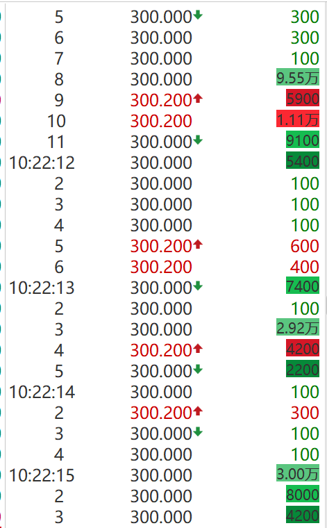 在10点20分34秒,一笔10万股大单卖出,涉资3000万港元,10点20分35秒,两笔超5万股大单卖出,涉资3681万港元,10点22一笔涉9.55万股大单,涉资2865万港元。