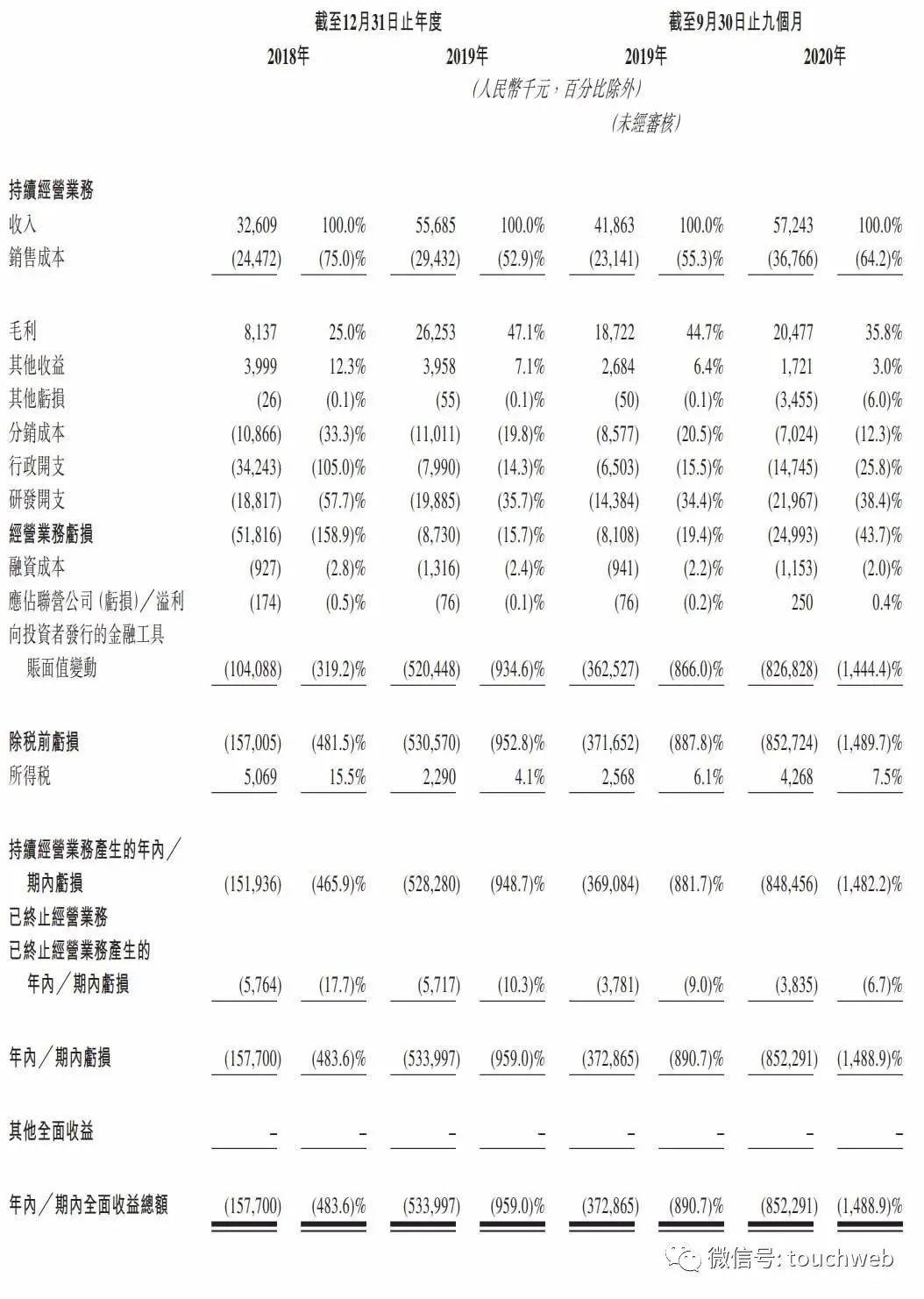 贝康医疗2018年、2019年期内亏损分别为-1.58亿元、-5.34亿元;贝康医疗2020年前9个月期内亏损为8.52亿元,上年同期期内亏损为3.73亿元。