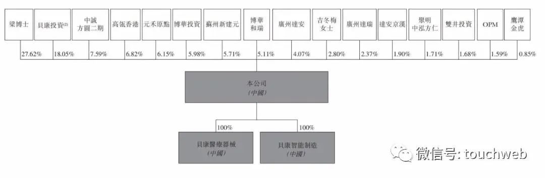 IPO前,梁波博士持股为27.62%,贝康投资持股为18.05%,中诚方圆二期持股为7.59%,高瓴香港持股为6.82%,元禾原点持股为6.15%;