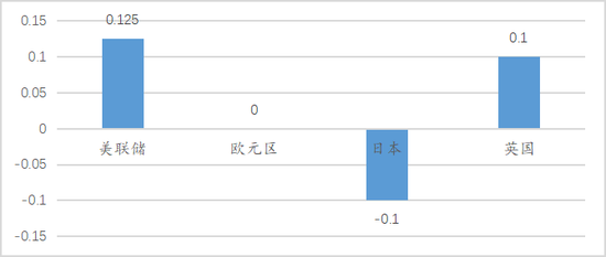 依据BIS提供的政策性利率数据,截至目前全球主要发达经济体央行的政策性利率水平基本都在零左右,零利率是普遍现象。图2显示,美联储和英国央行政策性利率尚为正值,分别为0.125%和0.1%;欧洲央行为0%,日本央行为-0.1%。