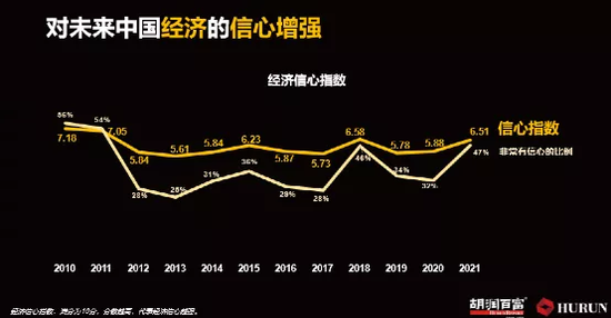 根据《财富报告》,中国高净值人群经济信心指数达6.51分(满分10分),是近十年来第二高分,仅次于2018年的6.58分。显示中国高净值人群对未来中国经济的信心增强,其中,表示对未来中国经济“非常有信心”的比例增长至47%,这一比例是十年来最高。