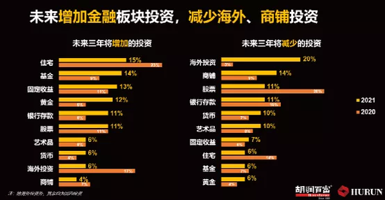 胡润研究院今日发布《2020方太·胡润财富报告》。《报告》显示,中国600万资产“富裕家庭”数量首次突破500万户,比上年增加1.4%;千万资产“高净值家庭”比上年增加2%至202万户;亿元资产“超高净值家庭”比上年增加2.4%至13万户。另外,住宅投资依旧是高净值人群未来三年最青睐的投资方向,而选择未来增加基金投资的高净值人群占比从9%上升至14%,超过股票位居第二。