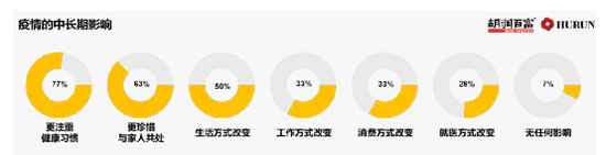 与之对应的,后疫情时代人生目标重要性排序中,健康第一,亲情第二,财富第三。《财富报告》称,此次疫情对高净值人群影响最大的是健康意识的提升。数据显示,近八成高净值人群认为健康是人生重要目标,且近六成将健康排在人生目标重要性的第一位,其次是亲情、财富、时间、事业。相比疫情前,77%的高净值人群认为自己“更注重健康习惯”且63%更珍惜与家人相处;同时,半数的高净值人群认为疫情改变了他们包括日常娱乐在内的生活方式。