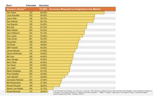 74%的预测准确率意味着什么?按照Sharpe的统计,当时美国知名的股票预测专家中,没有一个人能够达到74%的准确率;其中记录最好的预测专家Ken Fisher的准确率,是66%。