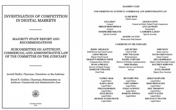 此外,小组委员会对现有的反托拉斯法,竞争政策及当前的执法行为进行了审查,以评估其是否足以解决数字市场(digital market)中的市场支配地位和反竞争行为。