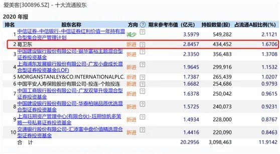 根据年报披露,爱美客的十大流通股东中多为机构。值得注意的是,知名私募大佬葛卫东在2020年四季度新进成为爱美客第二大流通股东。