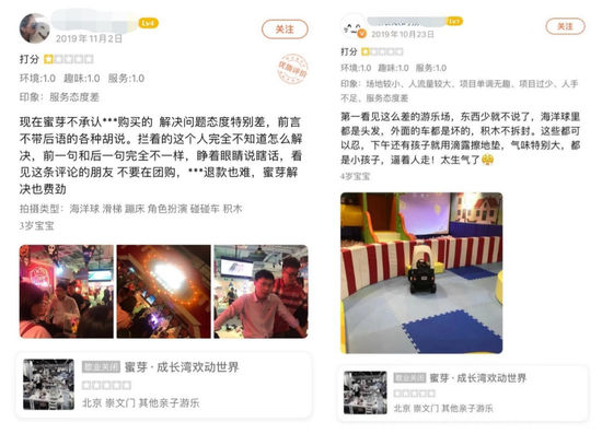 随后,记者拨打蜜芽官网客服咨询蜜芽门店关停原因,对方仅表示是上级公告通知,具体调整原因并不知情。不过,在大众点评APP上,有不少用户留言投诉已经关停的蜜芽欢动世界存在服务态度差、管理混乱、项目单调等问题,而这些投诉均集中在蜜芽欢动世界门店关停不久前一段时间。