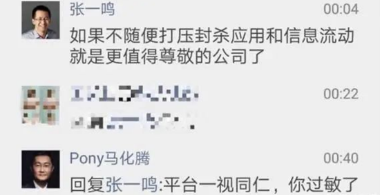 2018年4月,微信和QQ开始封禁抖音,用户分享抖音链接到上述平台均无法正常播放。同时,张一鸣和马化腾还在社交平台公开喊话,马化腾则淡淡回应称“平台一视同仁,你过敏了”。