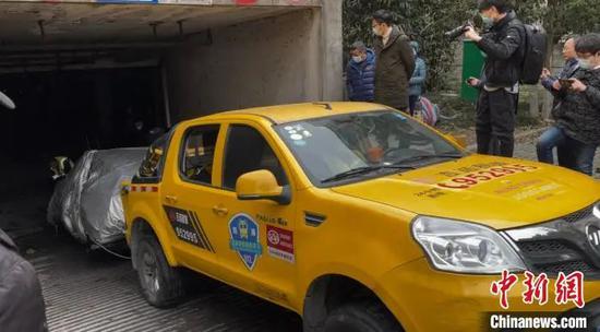 1月19日晚,一辆特斯拉Model3在上海某小区地下车库起火爆炸。图为着火车辆被运走。徐明睿 摄