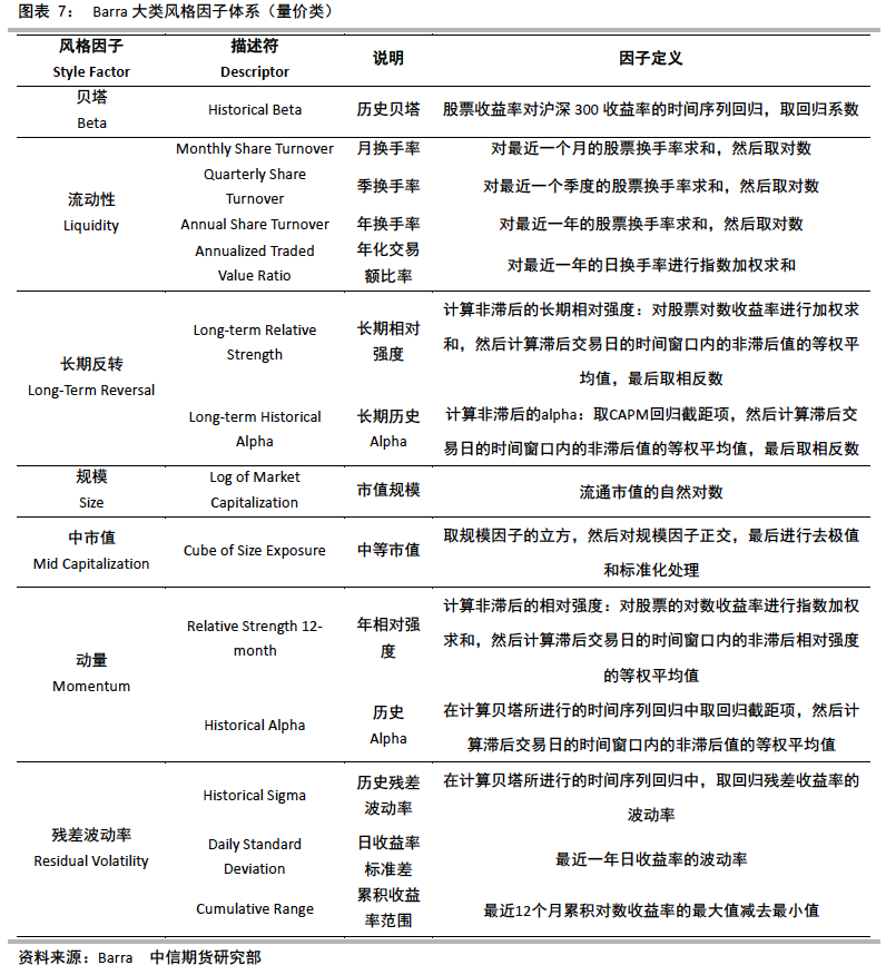 Barra大类风格因子体系中,量价类的风格因子比较清晰的反映了权益资产市场表现的某一个维度,背后的含义也非常明显。